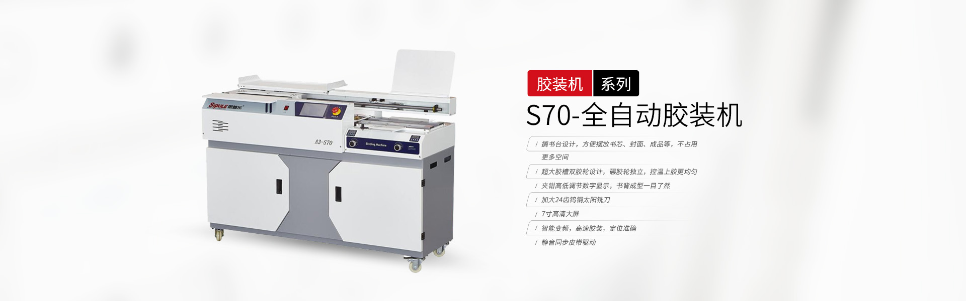 Self-developed fully automatic wireless adhesive binding machine, paper cutting machine and indentation machine and a series of post-press equipment, complete categories, perfect functions, stable performance, excellent quality, moderate price, and on this basis constantly push through the old and bring forth the new.